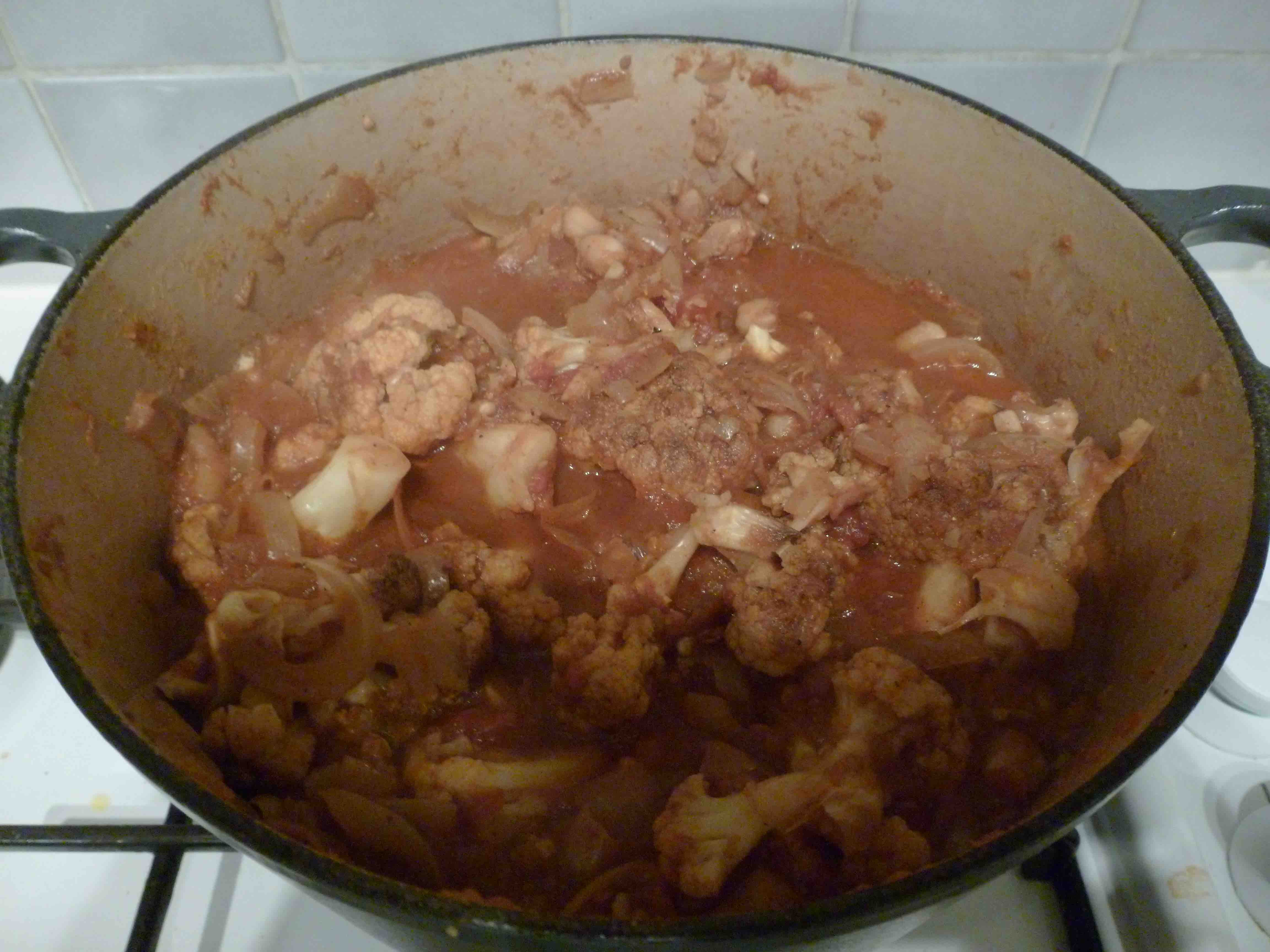 Sunday’s dish was to be Cauliflower and Chick Pea curry. The thought of boiling the cauliflower, as Hugh suggests, was just too reminiscent of my childhood so I decided to go with a more ‘on-trend’ option of roasting it – the results were surprisingly good.